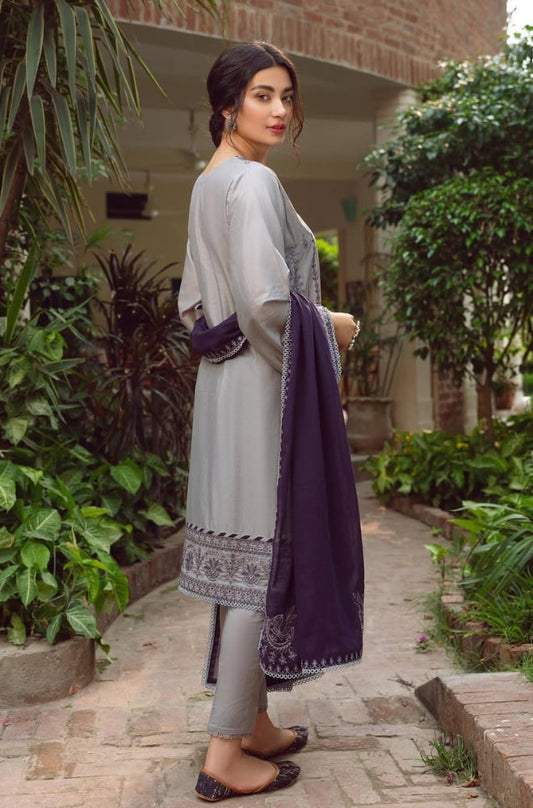 JADE - 3PC Fully Embroidered Front With Digital Printed Khaddi Net Dupatta - ES 1801