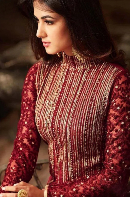MUSHQ - Fully Heavy Embroidered Front Hand Work On Net With Net Sequence Embroidered Dupatta With Four Side Eplic - ES 2019