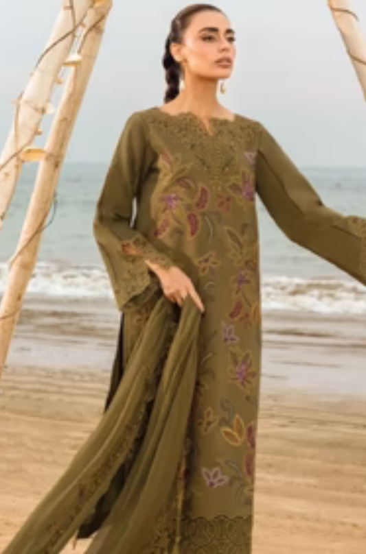 ASIM JOFA-3 piece embroided lawn shirt with embroided ready to wear dubatta and trousers-ES1502