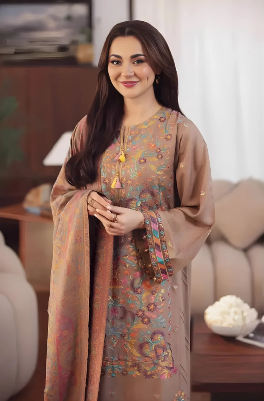 Nishat - 3PC Unstitched Dhanak Embroidered Shirt with Embroidered Dhanak Dupatta and Trouser - ES 2126